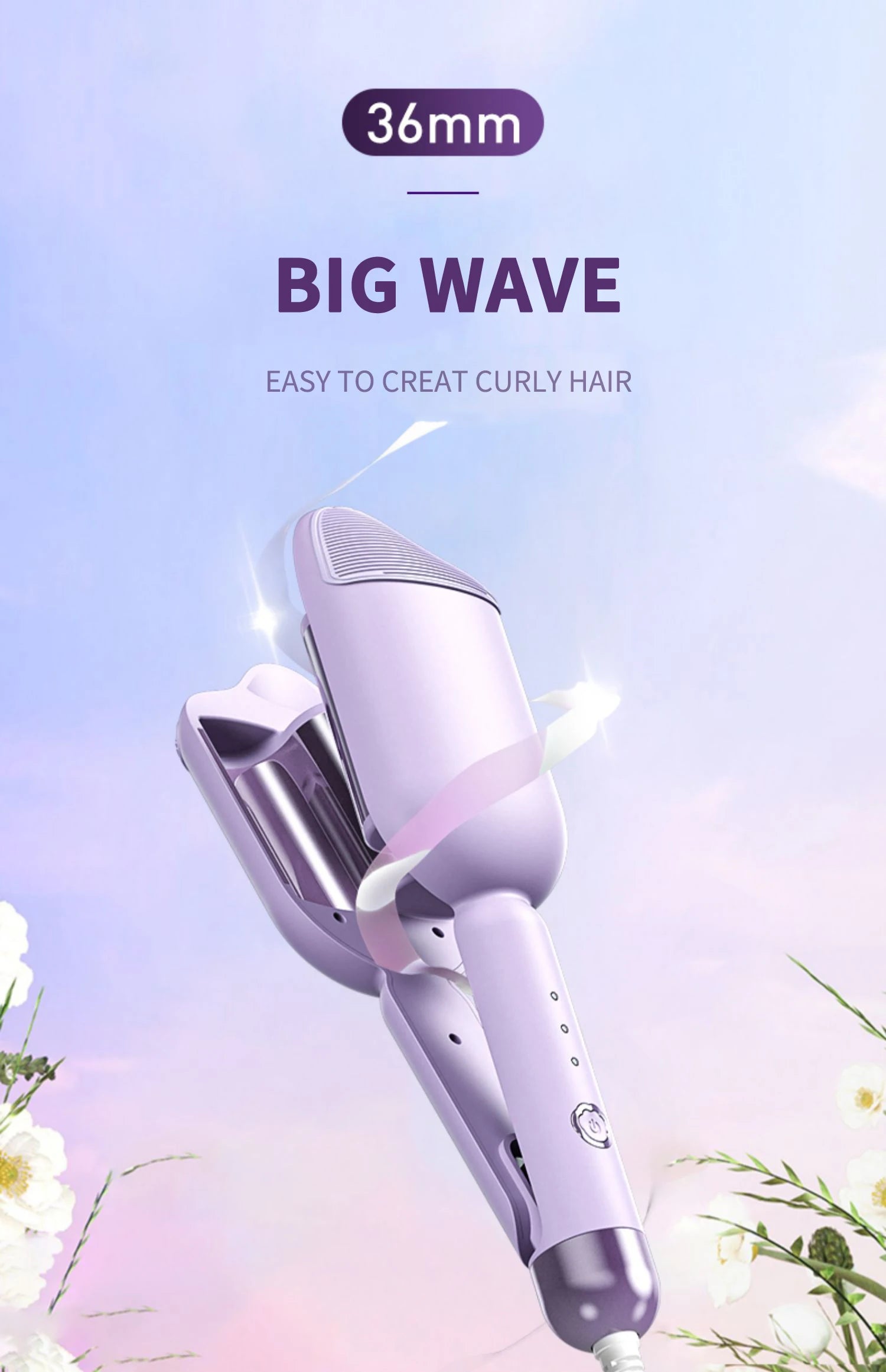 Bigoudi électrique en céramique, fer à friser longue durée, outil de coiffage, baguette à friser, grande vague, 36mm