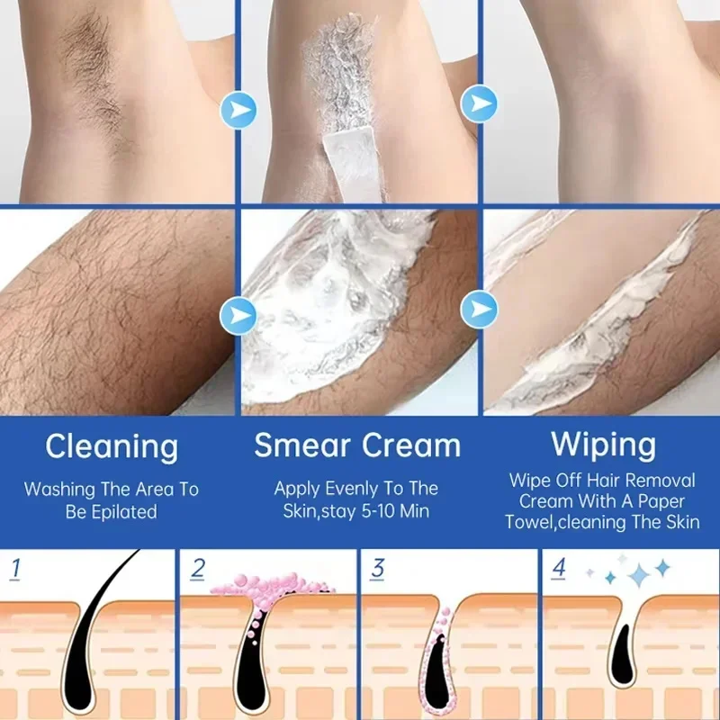 Suitable for limbs and armpits, please do not use on the face, lips, or private parts.Suggest using hair removal cream after bathing to avoid any discomfort.